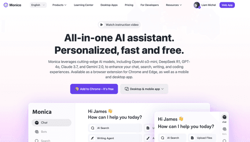 An all-in-one AI assistant (browser extension, desktop & mobile apps) powered by multiple advanced AI models (GPT-4o, Claude 3.5, Gemini 1.5, DALL-E 3, Kling etc.) for chat, writing, summarization, translation, image/video generation, and interacting with documents/webpages.